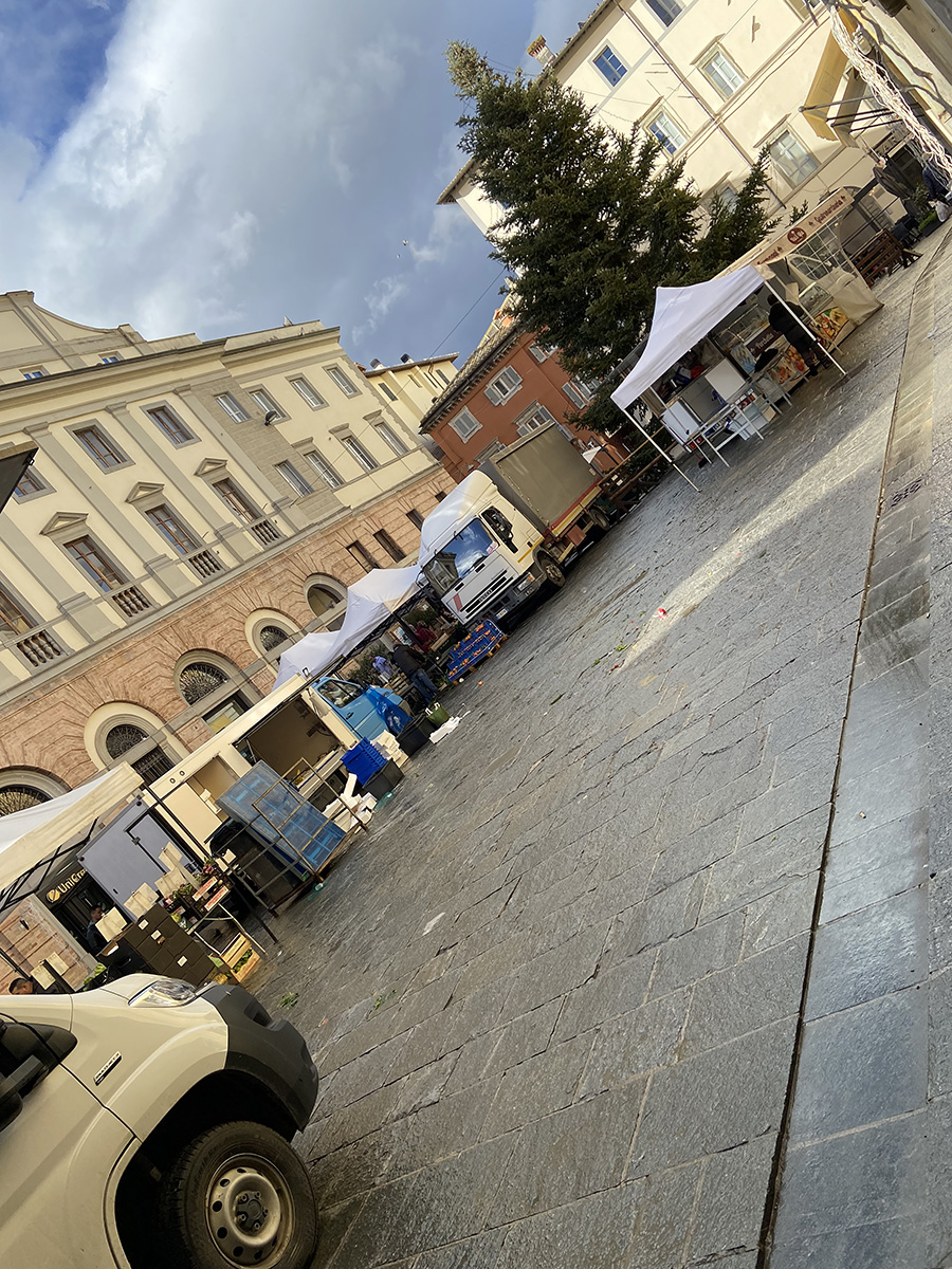 Hi everyone! I hope you’re enjoying your holiday. I wandered into town on Christmas Eve to take my biscotti Americani (chocolate chip cookies 🙂) to Angelo and Bar Mary. I also stopped by books for dogs for a drop off of some things I thought they could sell, it was busy. But the market was already breaking down because it was Christmas Eve. I sat and had a glass of vino bianco at Bar Mary. It was nice outside in their enclosed seating area. No one there but me.