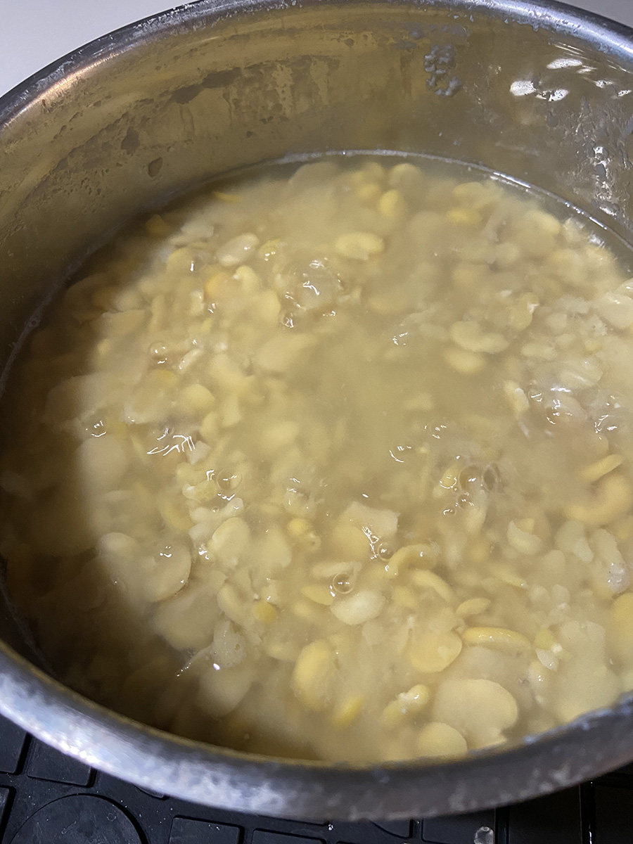After our trip to Puglia I was inspired to make one of the lunch dishes we had while in Lecce. The entire south of Italy, called the Mezzogiorno, always has been very poor. Most of the Italians who immigrated to other countries came from these regions to find a better life. The food that evolved there is called cucina povera, literally poor cuisine. Fave è cicoria is a traditional dish made from only four ingredients. Dried fava beans, chicory, which is available everywhere here now in supermarkets, (but would have been foraged in the wild back in the day), garlic and pepper flakes. Finally it is served with a drizzle of olive oil. Gnam, gnam. (Italian for yum yum 😁)