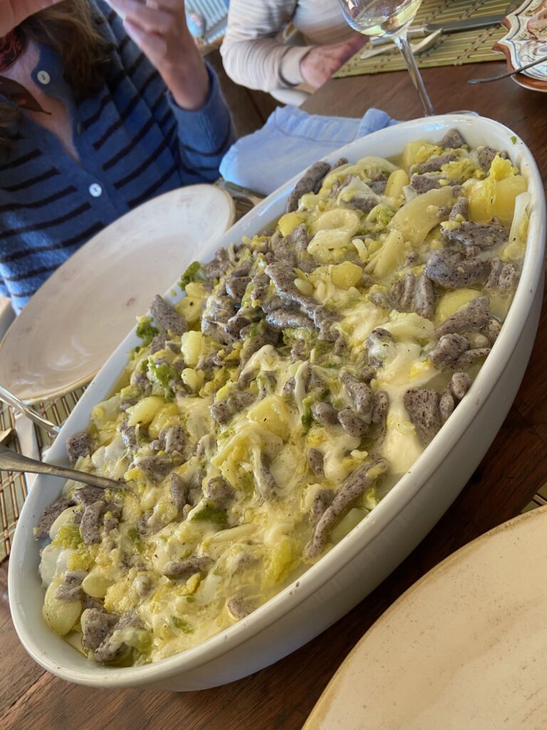 We had a meet up for Sunday pranzo with my friend Doug up in his amazing home. It was the gang of six. A perfect day and we welcomed primavera. It was the final day of the Olympics and he made the signature dish from the north of Italy which was served everywhere from the cafeterias at the Olympic village to 3 Star Michelin restaurants in Milan. It is called Pizzoccheri and is made with buckwheat pasta (homemade by Doug), potatoes, garlic cheese topped by butter. A real calorie bomb. But good! 😋 plus a refreshing salad to make up for it and a beautiful lemon tart. Thanks Doug for a fun time and it was lovely seeing the “gang”.