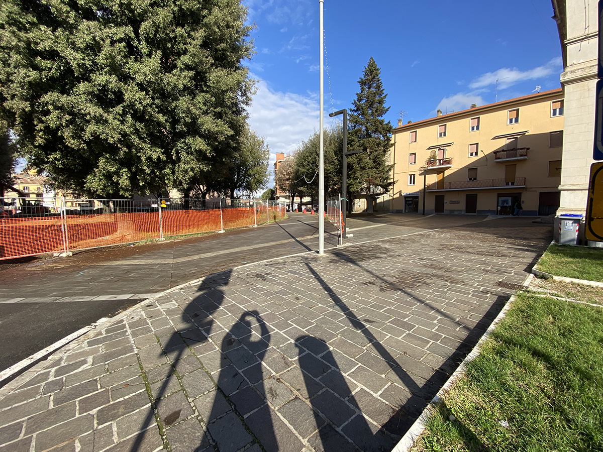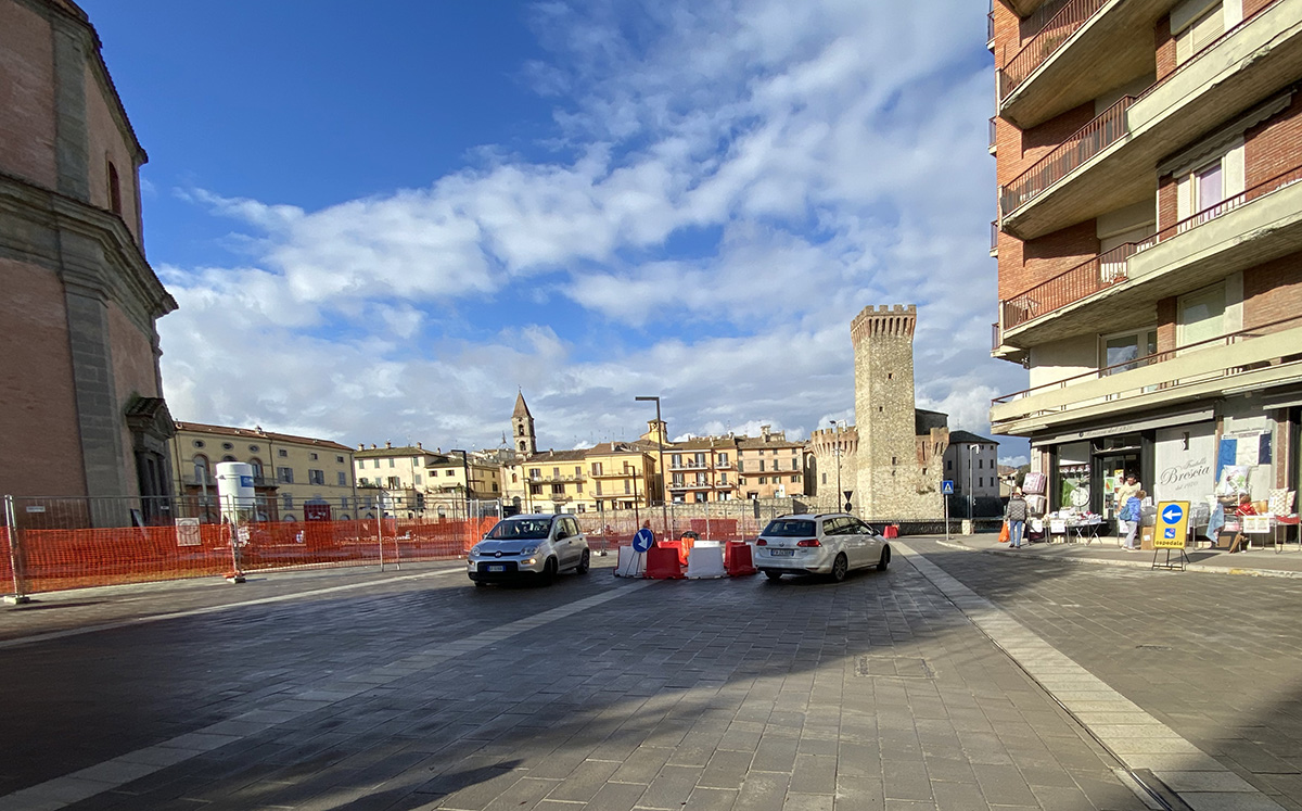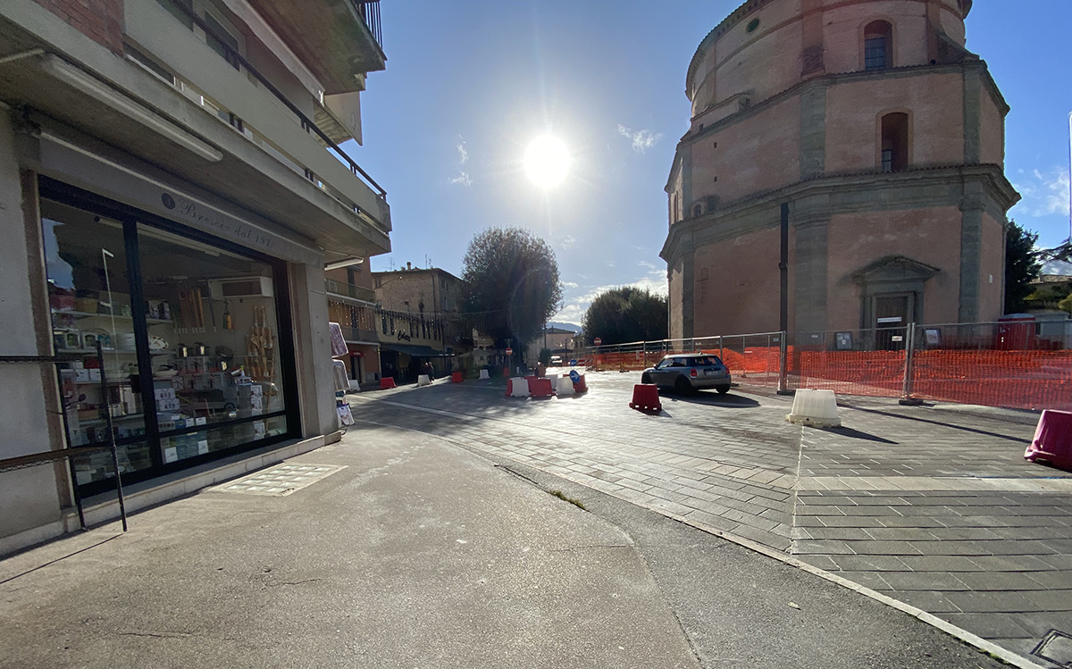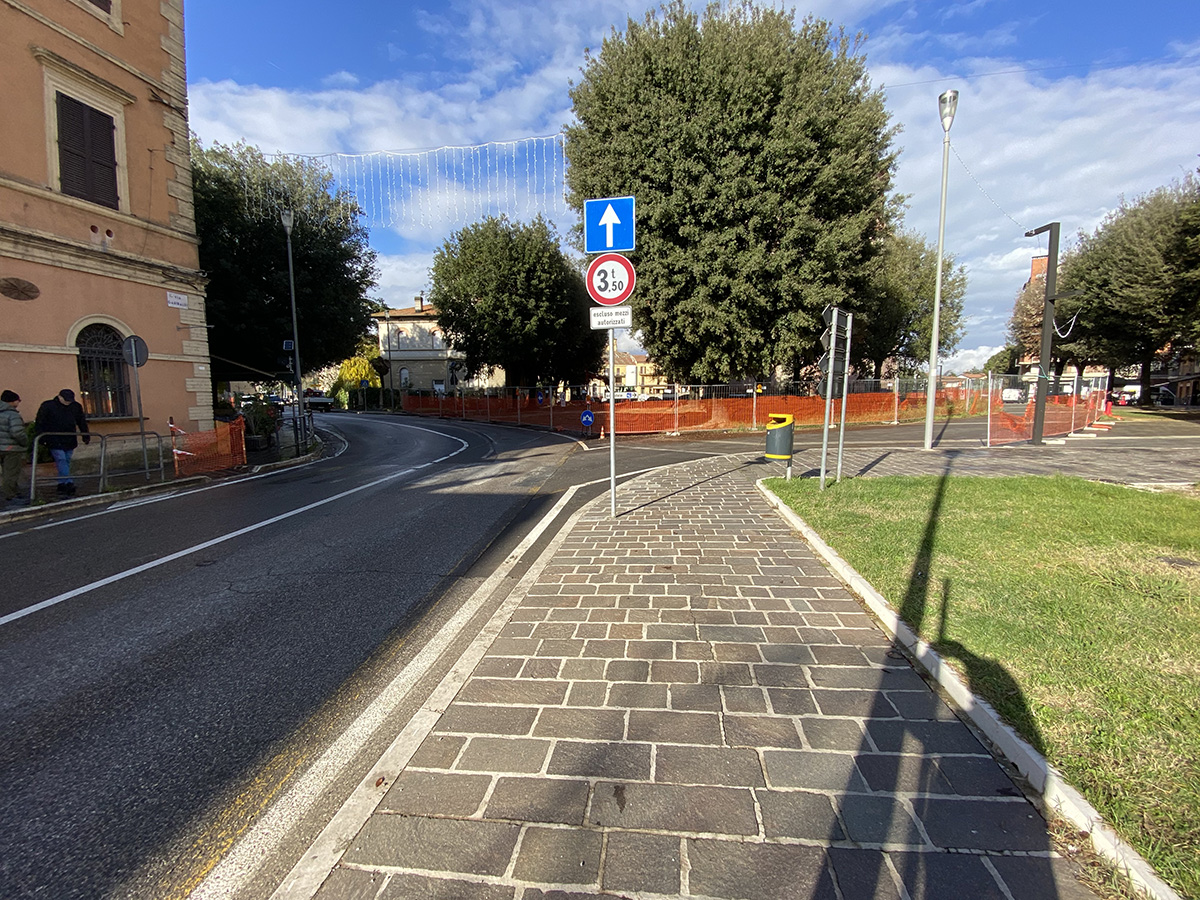 I’ve been doing my Saturday shifts at Books for Dogs. Always fun because you meet so many people. I’m starting to recognize our regulars as well. On my walk there I passed the on-going construction between our round church, named Collegiata, and the Centro Storico. Big changes in our traffic patterns. One thing I would like to see are more benches in that area. I don’t get why they have so few. The old men who populate so many Italian villages love to sit on them, the more central the better. It’s a sight I always love to see. Here are some of the (still) work zones and new public spaces, intersections, streets and roundabouts.